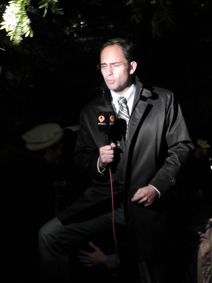 There was media everywhere. This Spanish newscaster gets a leg up on the competition