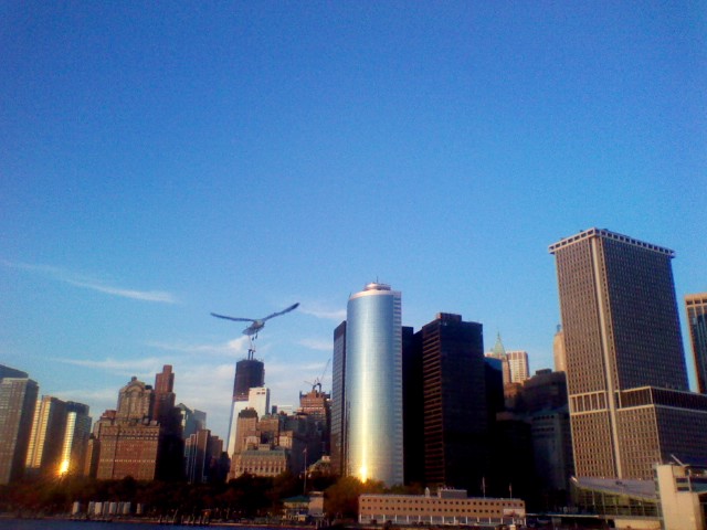 Yesterday I took the Staten Island Ferry, and it brought back to me the thrill I used to experience when I took the ferry to ‘overseas’ far, far away and long, long ago. I remembered with fondness the camaraderie I shared with fellow travellers, strangers together on a journey across the sea. And as if by magic, as a group of total strangers were making the return trip to Manhattan from Staten Island yesterday, a lone seagull decided he couldn’t be bothered to fly and hitched a ride on the front of the boat. This group of total strangers broke out into laughter and started talking to each other, swapping stories, joking about the seagull and even passing bits of bread and cake to each other so they could reward the stowaway for his bravado.