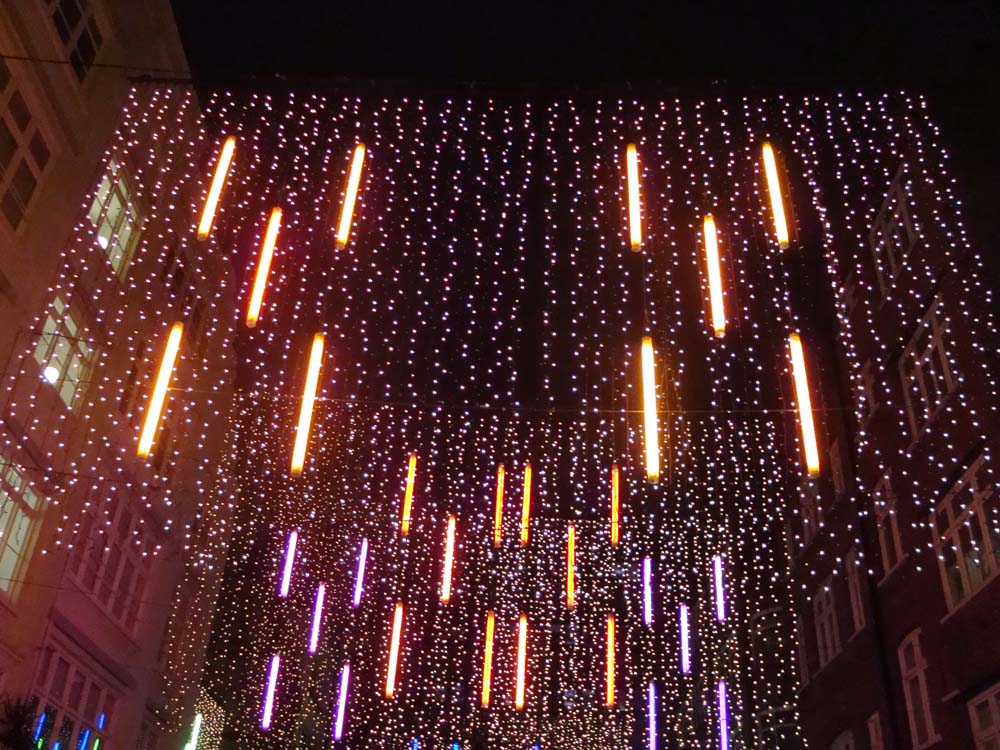 Pretty, right? The only thing is, I’ve been spoiled by too many Christmasses in London. They know how to do Christmas lights there. Something I never see here are lights strung from one side of the street to the other. Those are the Christmas lights I grew up with – in Ireland and in England it is par for the course, and I miss the excitement of turning a corner onto a new street and being amazed at the stunning aerial displays. Here are a few photos of London from Christmasses past.
