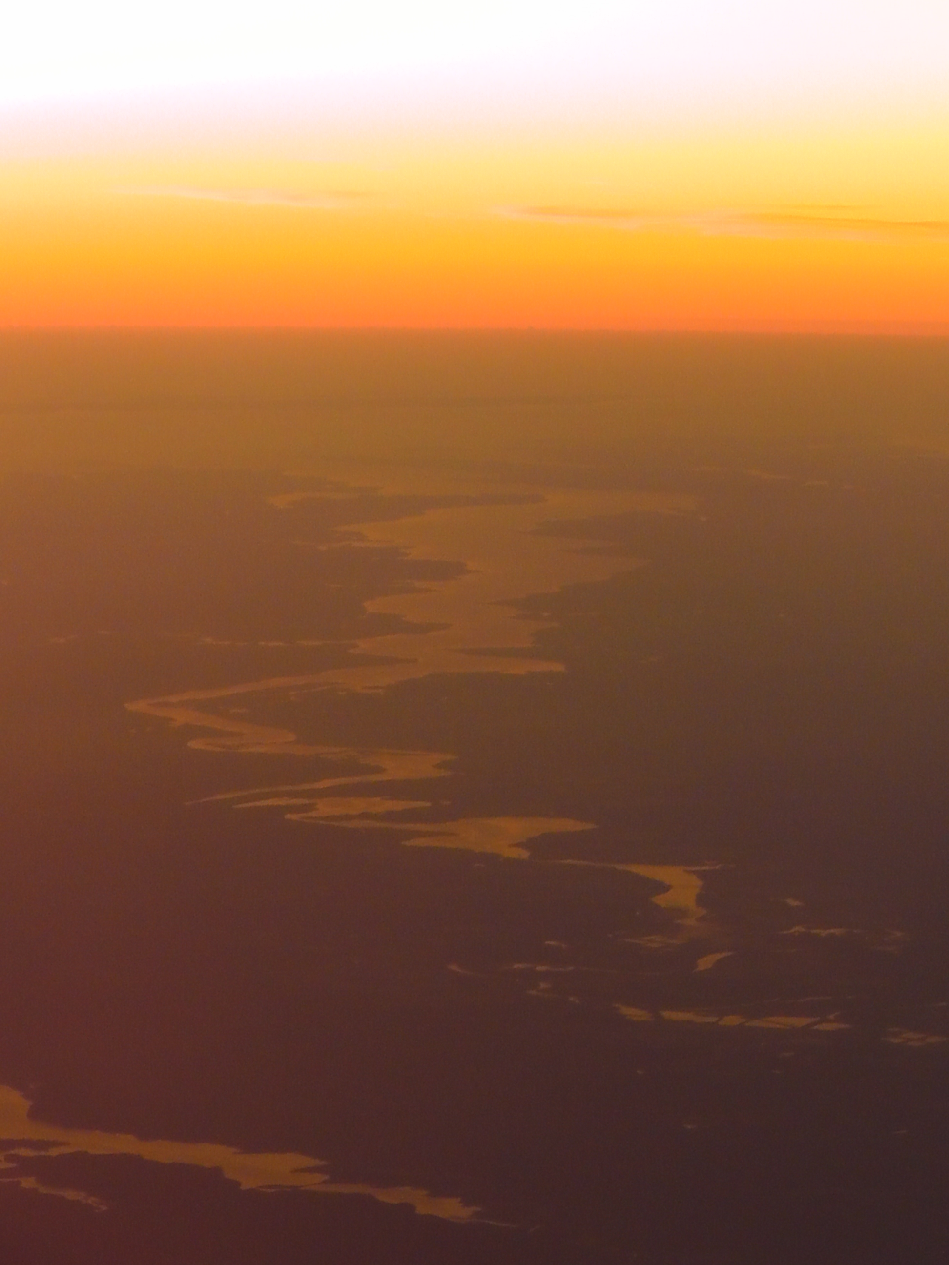 I have seen some amazing dawns in my time, from mountaintops, shores and from the air flying through the night into daylight. This morning, however, I experienced a dawn like no other. I took a very early flight from New York, and I was slumped up against the window gazing out at the runway as the airplane taxied out for takeoff. The whole world was awash with a dusky French navy and the faintest glimmer of pink along the horizon suggesting the approaching dawn. It was a lovely sight, with the runway lights of LaGuardia twinkling in the foreground. The engines revved and we started hurtling down the runway. Just as the wheels left the ground, a streak of the most brilliant metallic rose shot across the horizon and as we climbed higher and higher that streak exploded as if the sky was splitting wide open and the whole sky lit up with a dazzling, electric flush of colour. The suddenness was breathtaking, and over so quickly I never had a chance to reach for my camera. By the time I managed to tear my gaze away long enough to take a shot, most of the rose had dissipated and yellows and oranges were starting to dominate. Still lovely, but nothing compared to that first blush burst of dawn.