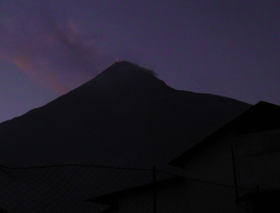 Fuego’s fire visible from the farmyard at the bottom of the volcano