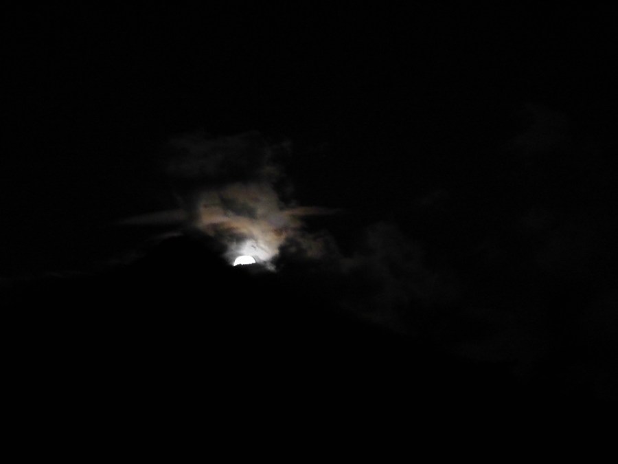 Big fail on getting a shot of the volcano, so here’s the moon peeping over a neighbouring volcano – taken during the bumpy ride so a little blurry.