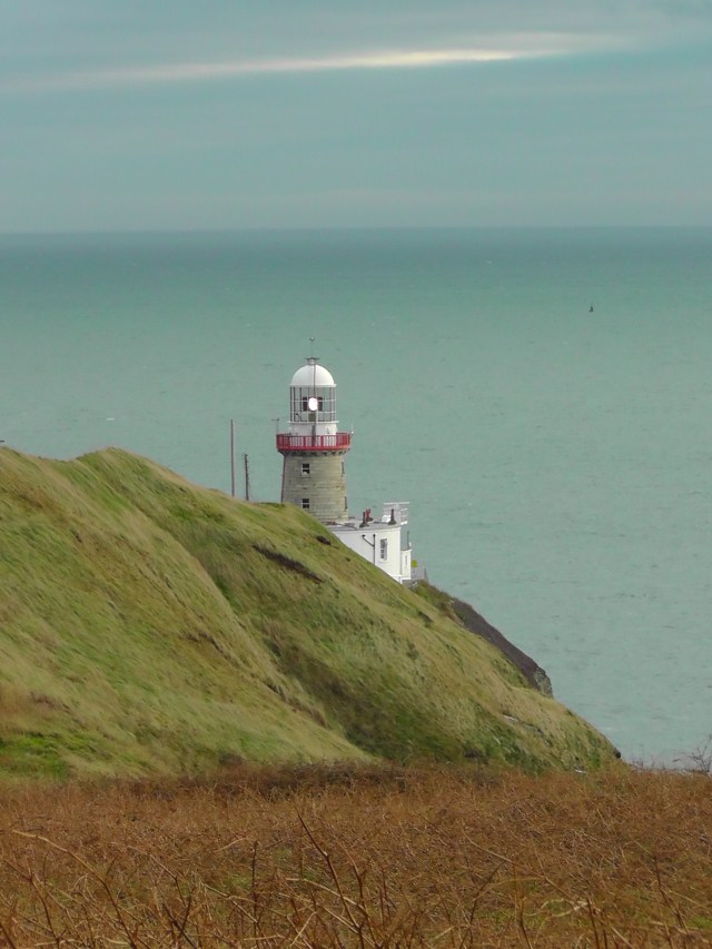 Cold and blustery without a drop of rain, today was the perfect weather for a long walk across the clifftops. I went to Howth in north Dublin for a short ramble and ended up walking almost nine miles in total, but along the way got to see some fantastic sights. When I arrived in the early afternoon; Howth was overcast, grey and extremely windswept – I was thankful I had bundled up in layers of fleece. Off I set along the road leading from the harbour towards the cliffs. This is what Howth Head looks like: