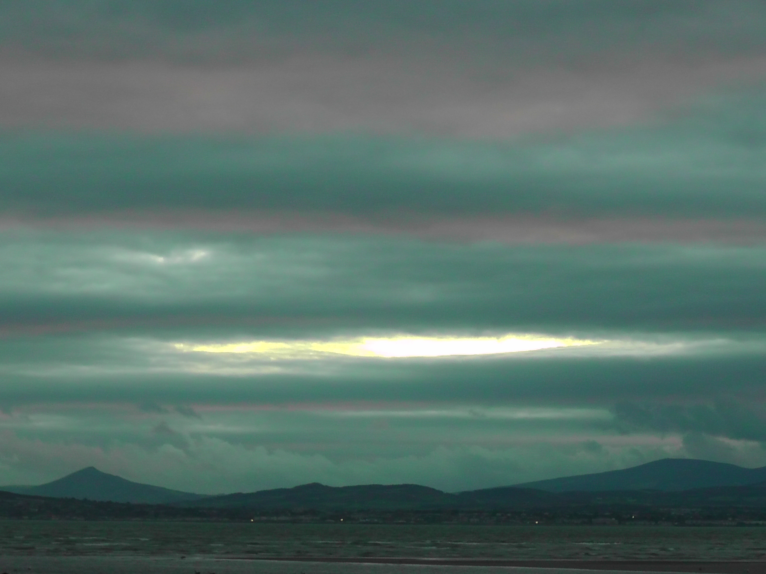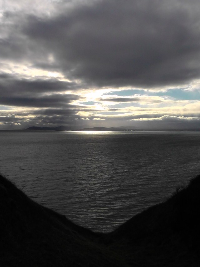 As I was nearing the Baily Lighthouse, looking over towards Dalkey Island and the Sugarloaf Mountain, the sun broke through with great shafts of light spilling through the cloud cover.