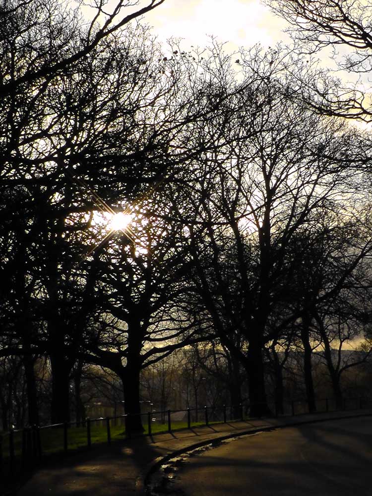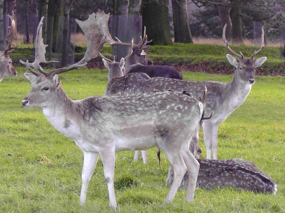 I turned off to the left before reaching Áras an Uachtaráin, the president’s residence, because I was looking for something in particular – the fallow deer that roam the park. Along the leafless pathways I wandered until I met a bloke who said he’d just seen two herds of deer wandering around the playing fields. A quick trot through a bare and frosty woodland and I was there.