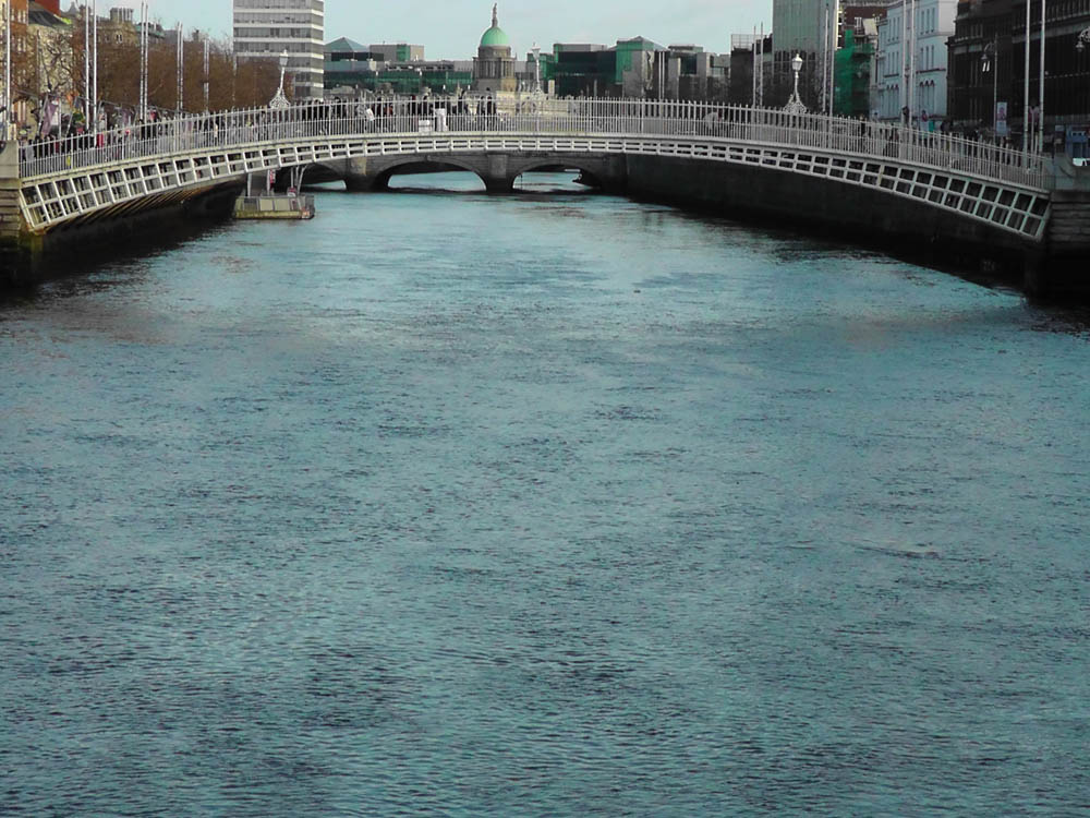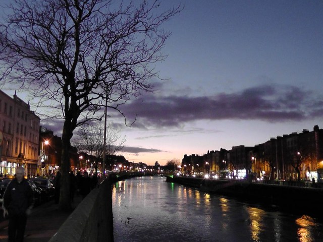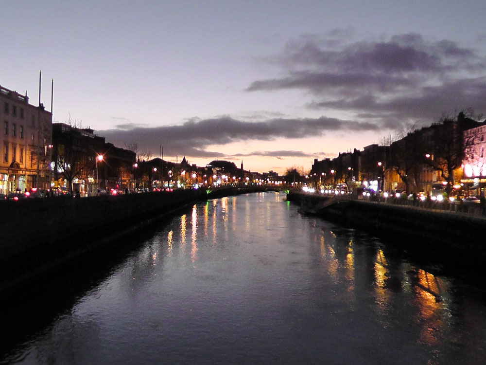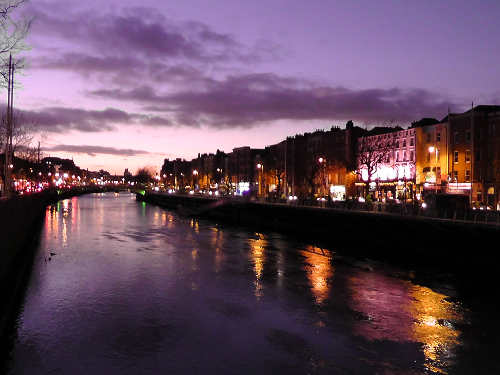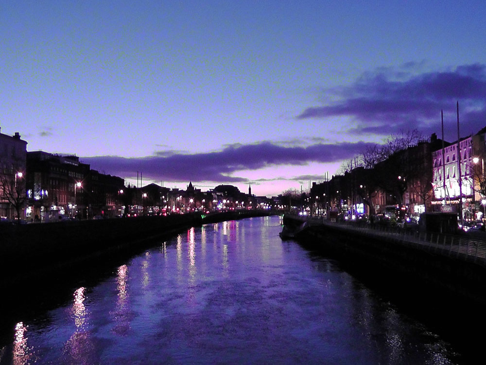 It was getting dark now, so I hitched a ride back into town to see the sun go down over the Liffey. I parked myself on O’Connell Street Bridge between the street vendors to watch the Liffey changing colour with the setting sun.