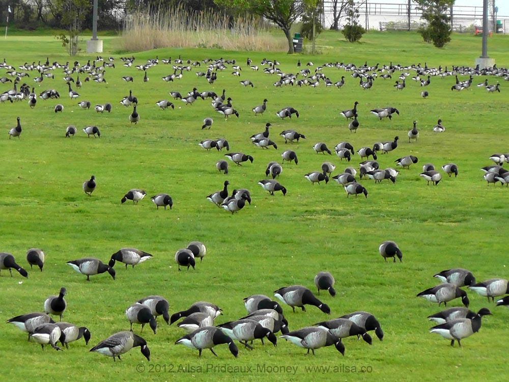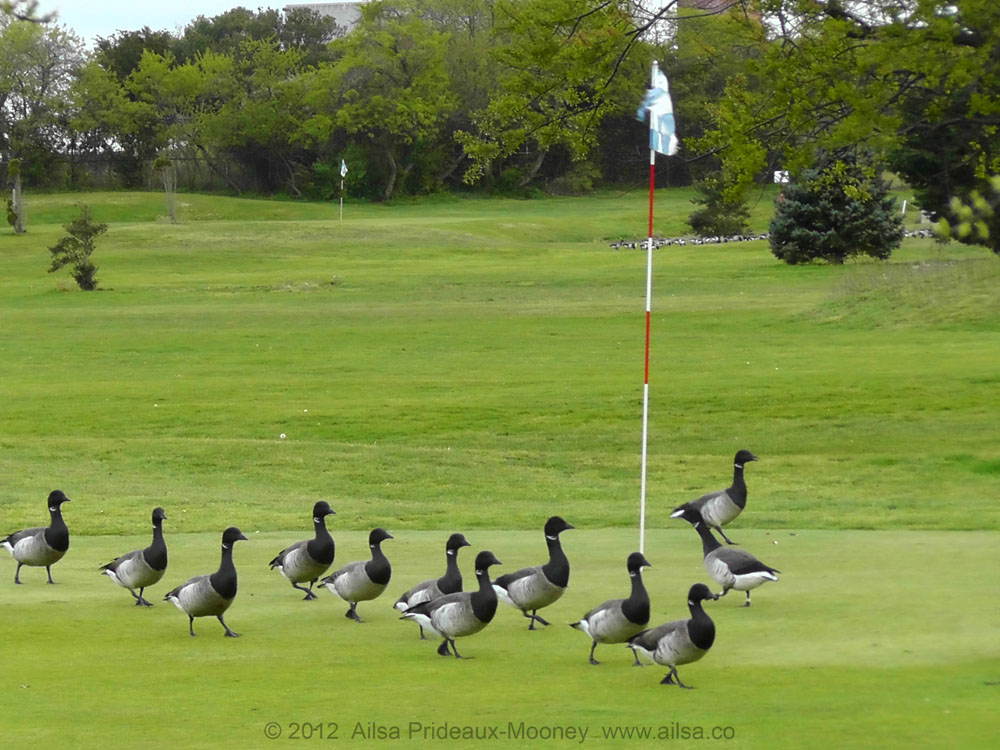 As I sat in the sand with the waves lapping at my feet, I saw skein after skein of geese drifting in graceful V formations overhead, but I couldn’t figure out where they were heading. There were an awful lot of them. On my way back from the beach, I passed by a local golf course and the mystery was solved. Apparently, the geese have figured out that the golf course is the place they’ll be least likely to be bothered by anything more annoying than the occasional golf ball. They have practically taken over the grounds.