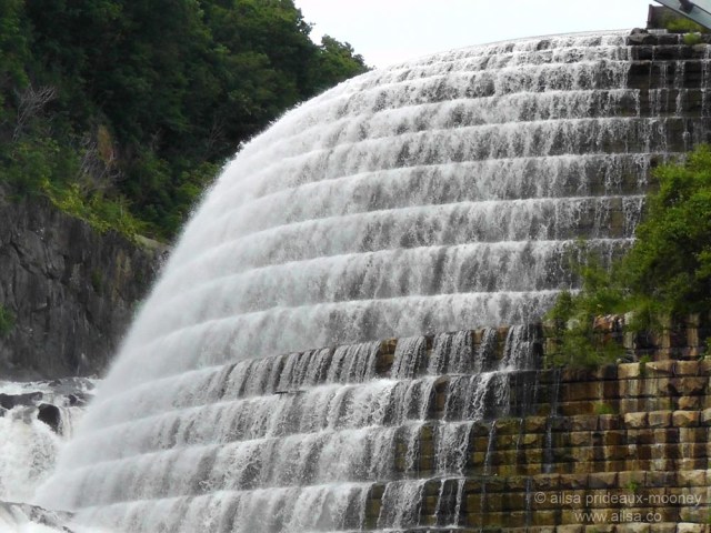 But the most spectacular thing about this dam is its dual spillway; part natural waterfall and part stepped, terraced stone, which delights both eyes and ears.