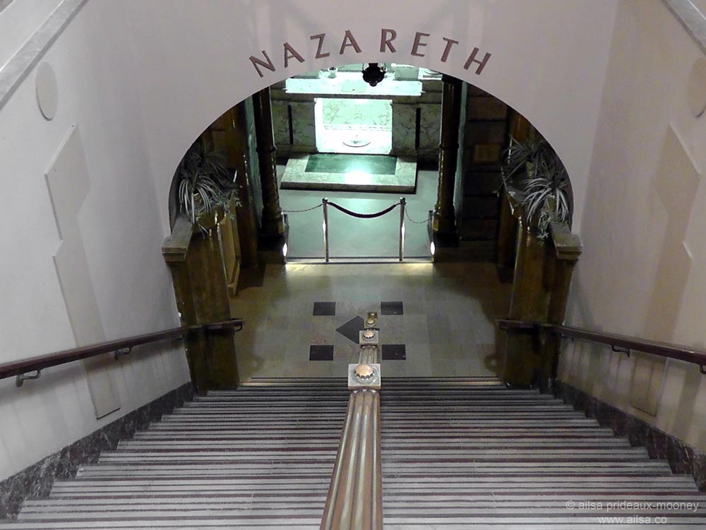 Still dazed by the Byzantine glory of the Franciscan Monastery of Mount St. Sepulchre, I followed the guide as he led the way down to the Lower Church via a staircase off-limits to the general public. The archway above the staircase was emblazoned with a single word: Nazareth.