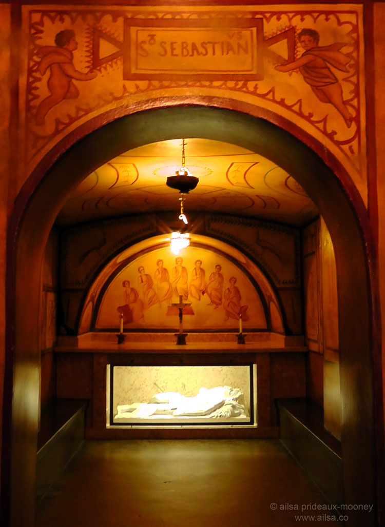 …through dim passageways and rooms covered with early Christian graffiti and artwork…