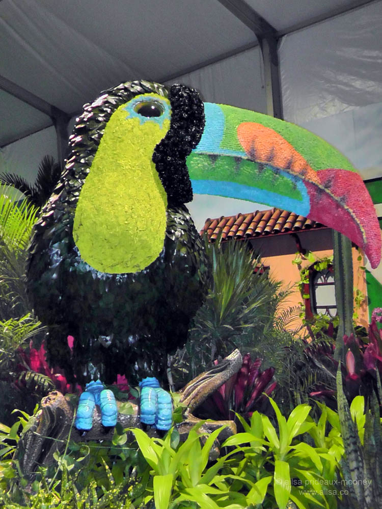 Toucans were the order of the day, with paper toucans peering out of shop windows, and a giant toucan made out of dried Brazilian button flowers and black magnolia leaves sitting proudly in the show tent.