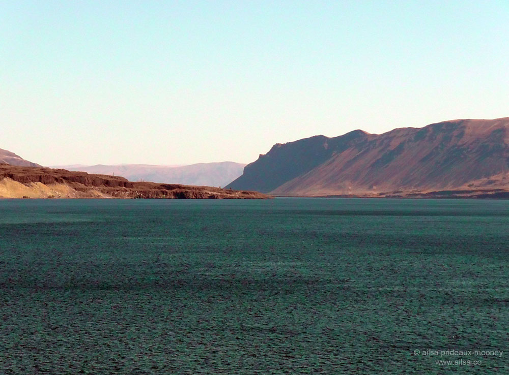 A glance over at Sprocket revealed that he had lost his lunch, literally. A pile of half-digested kibble lay at one end of his crate and he was scrunched up in the other corner, looking very sorry for himself. “It’s okay” I whispered, as I whipped a new drool pad out of a bag in the back and lay it on top of the sorry pile of kibble. The look of gratitude in Sprocket’s eyes was something I’ll never forget. He stretched out on the soft dry pad and snuggled his face into me as we continued on our way through the arid, wildfire-prone climes of Cle Elum and Ellensburg. The dry, dusty landscape bore the scorch marks of recent fires. Then we dipped down into Vantage to cross the Columbia River, a welcome burst of water in the midst of this parched land.