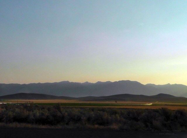 The sun began to sink towards the horizon and we crossed the Yakima River into the northeast corner of Oregon and switched onto I-84 southbound. Off in the distance I could see some dramatic mountains glowing blue in the evening light. “Do you know the name of those blue mountains?” I asked Jill, my nose still pushed up against the passenger side window. “The Blue Mountains” she answered and we dissolved into laughter.