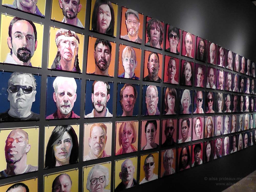 Exhibitions are a mix of permanent and visiting collections. During my visit yesterday I saw several very different collections. Population by Ray Turner features an array of portraits painted on glass.