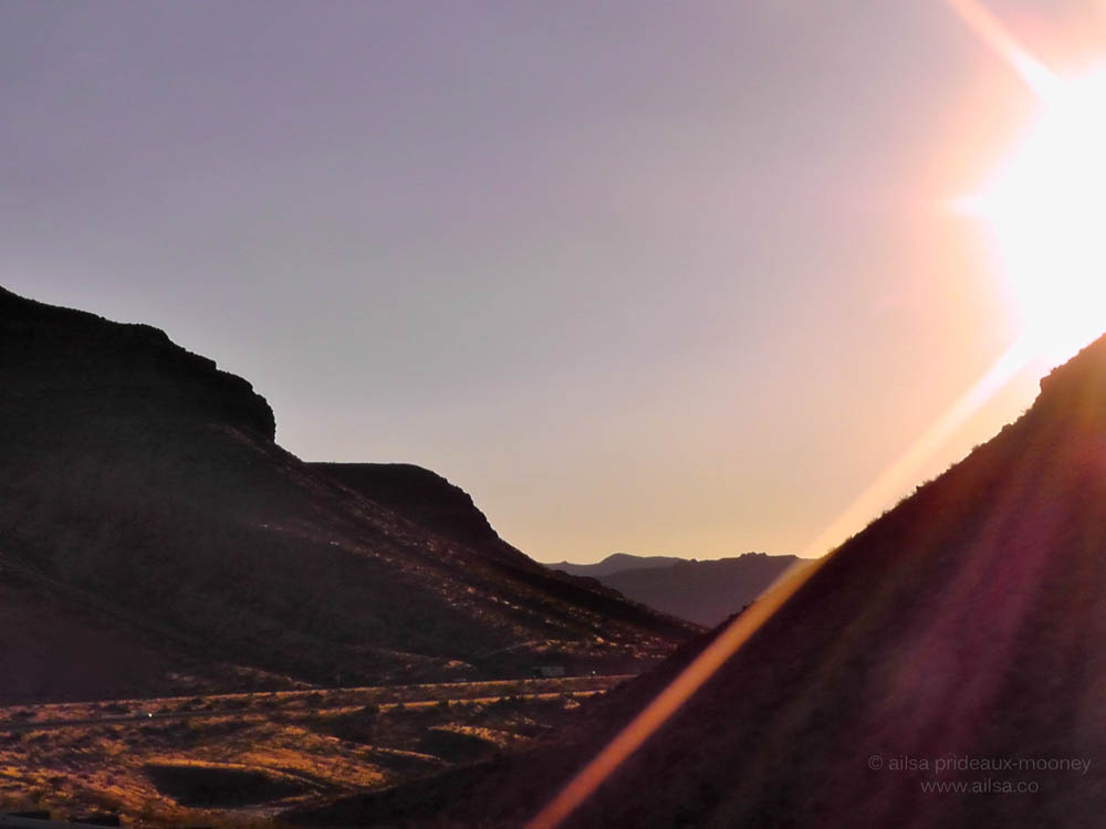 The moon was already high in the sky when we entered the gorge but we weren’t in any rush now, so meandered through leisurely, marvelling at the scenery. The sun was beginning to set by the time we emerged into the Arizona desert, now painted heather and ochre by the dying rays of light.