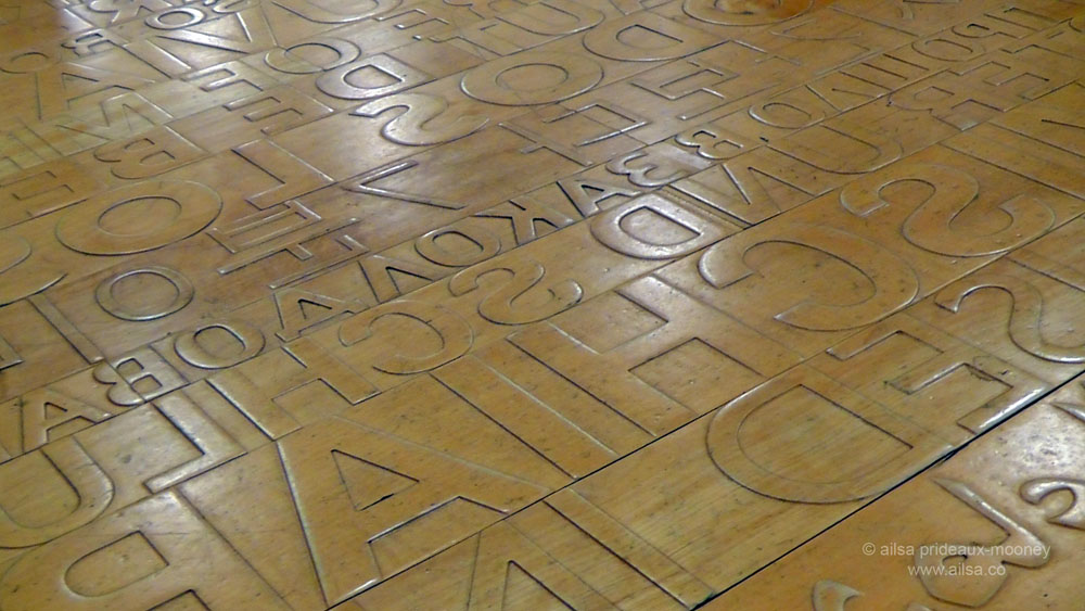 It is also an interesting commentary on the changing form of print culture in this era of e-readers and digital media. Our relationship with the printed word has changed dramatically in recent years. Standing on this floor, surrounded by an ocean of words, I regularly see visitors reach down to run their hands across the raised letters and can’t help but feel that the artist is making an argument for the tactile, visceral joy of reading printed material.