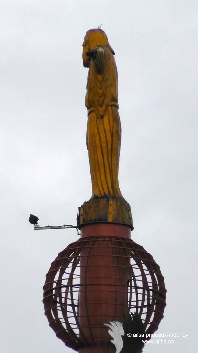 The southbound traffic on I-5 was slow at first; rain was falling and a thick layer of fog made for difficult driving but we didn’t care; we were officially on our road trip. About a hundred miles south of Seattle, in a little town called Toledo, we took exit 63 and made a quick detour to see the Gospodor monuments. The legacy of an eccentric millionaire by the name of Dominic Gospodor who passed away in 2010; they are a bizarre collection of statues atop hundred foot tall rusty pillars and odd orb-like cages. The statues themselves pay tribute to the strangest of bedfellows, from Mother Theresa to Native Americans, Holocaust victims to Jesus and an eagle thrown in for good measure. I had read that the site was being maintained and there was public access but when we got there, there was no evidence of any access, or maintenance, for that matter. Garbage was strewn all over and as we picked our way gingerly along a pathway that seemed like it might lead to the statues, discarded tires and an upturned sofa stopped us in our tracks. Jo whispered in my ear “I’m afraid if we go any further we’ll find a meth lab.” I had been thinking the exact same thing. I met her gaze and we giggled nervously, then beat a hasty retreat. Back in the safety of the car we shook off the gloom of this disturbing place and got back on the road as a forlorn Jesus watched cars zoom by.