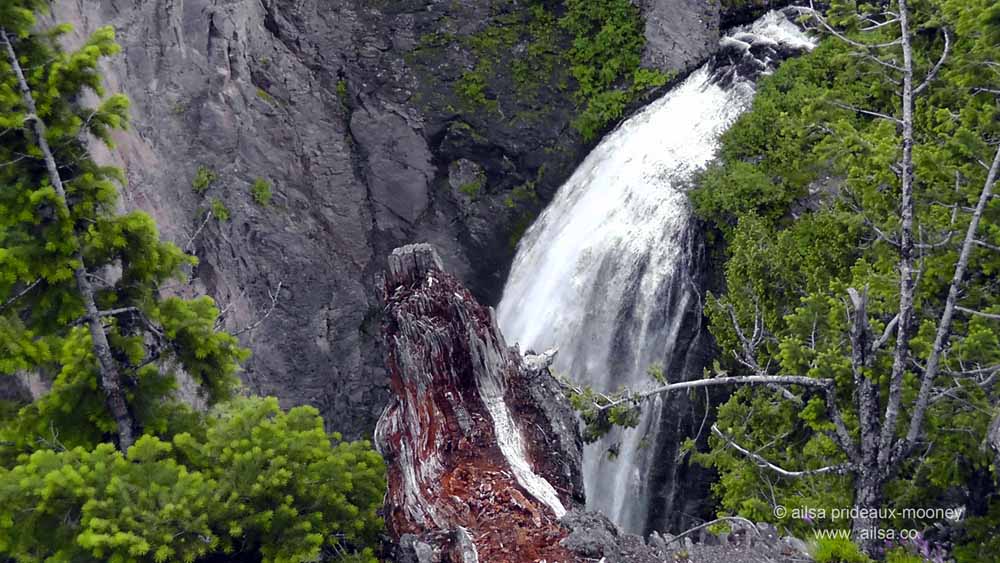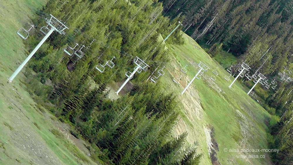 Once we hit the open road again, we rolled down the windows and blasted the remaining mozzies out of the car. White Pass was disappointingly snow free and the ski lifts looked terribly forlorn against the grassy slopes. When I first heard of White Pass, I assumed it was named after the snow that adorns the slopes in winter – it boasts the driest powder in the Washington Cascades and averages over 300 inches of snow a year. In reality, it was named after Charles A. White who was one of the engineers tasked with exploring the area in 1878 to find a good spot for a railway route through the mountains. I tried taking a photo of the lifts as we drove by but just as I was about to click a persistent mosquito sank its bloodthirsty fangs into my cheek and I flinched, leading to a rather off-kilter shot. I could feign artistic inspiration but I’d be lying. Still, I kind of liked the result; it gives me vertigo just by looking at it.