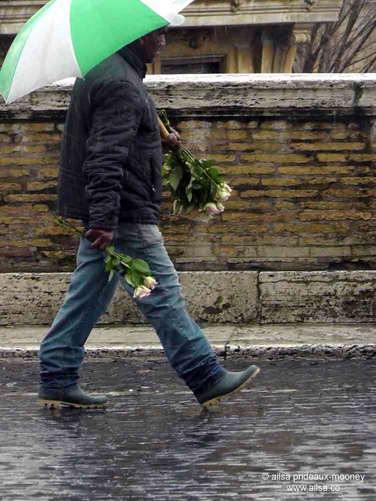 I watched as he retrieved his precious bouquet and carefully tended to the delicate blossoms, rearranging them into a pleasing bundle and gently shaking the water off them. The whole event lasted less than a minute, but somehow I felt like I was witnessing a secret, intimate ritual; a small insight into the life of a rose man. When he was finished he glanced up and met my eye, flashed me a dazzling smile and hurried off after a group of English-speaking tourists who were heading towards the Spanish Steps.