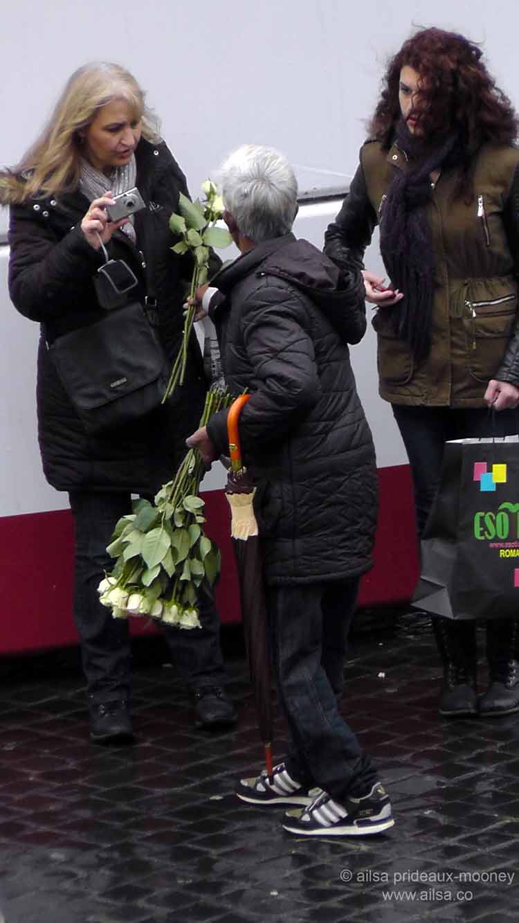 It’s got to be a very hard way to earn a living. The rose men in Rome were charming, but there were an awful lot of people who were dreadfully rude to them, It was very hard to watch.
