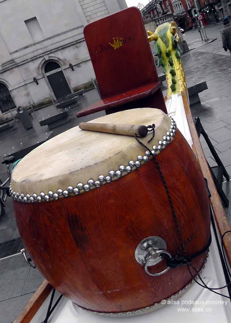 … complete with a majestic drum to urge the paddlers onward. I got to play the drum myself, before wandering back to listen to the much more delicate sound of the guzheng aka zither or Chinese harp.