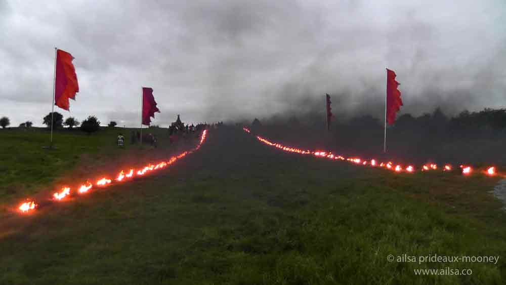 As the flames died down, festival goers drifted back towards the food carts for sustenance and another band broke into song under the great marquee, but there was still one more fiery sight in store, for on the way back to the car park, a great tiki torch bid everyone Slán (farewell).