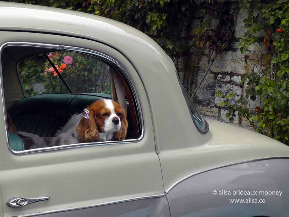 That’s my favourite shot, that little doggie looked so regal peeping out her vintage car window. To the manor born. 🙂