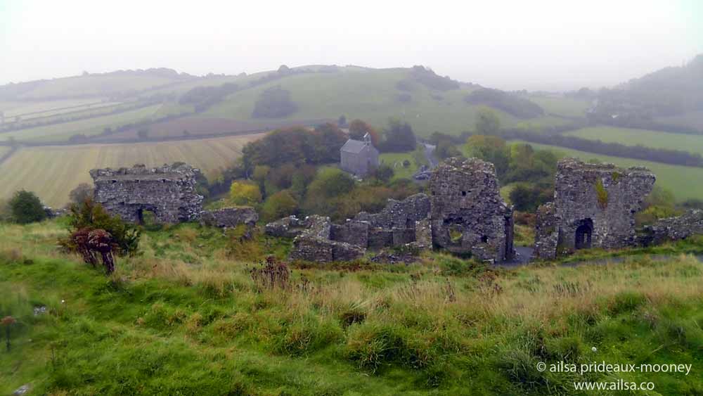 Love the way it’s not at all *manicured … tufty grass .. slabs of castle ruins and Irish soft mist … perfect .